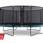 Hos BERG Pedal Go-karts and Trampolines får BERG FlatGround Champion 430 ros for at være ekstra smart til nedgravning med den effektive hoppedug, der lader 50% mere luft gennem materialet. Den velpolstrede kant bliver også fremhævet, da den beskytter både store og små under hop og leg.